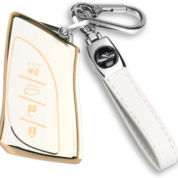 Lucrum Compatible with Lexus Key Fob Cover & Leather Keychain – White & Golden Edges