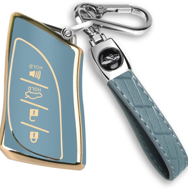 Lucrum Compatible with Lexus Key Fob Cover & Leather Keychain – Blue & Golden Edges