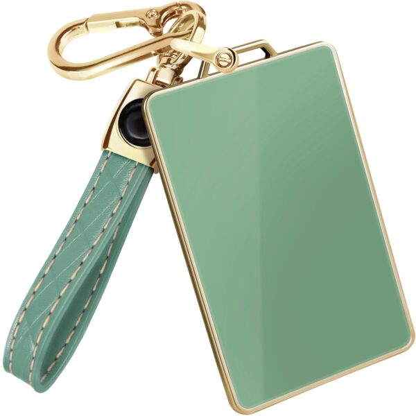 Lucrum Compatible with Tesla Card Key Holder & Leather Keychain – Green & Golden Edges