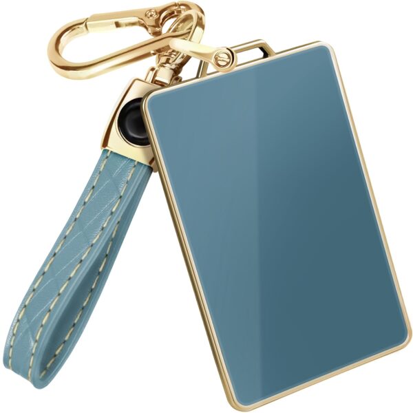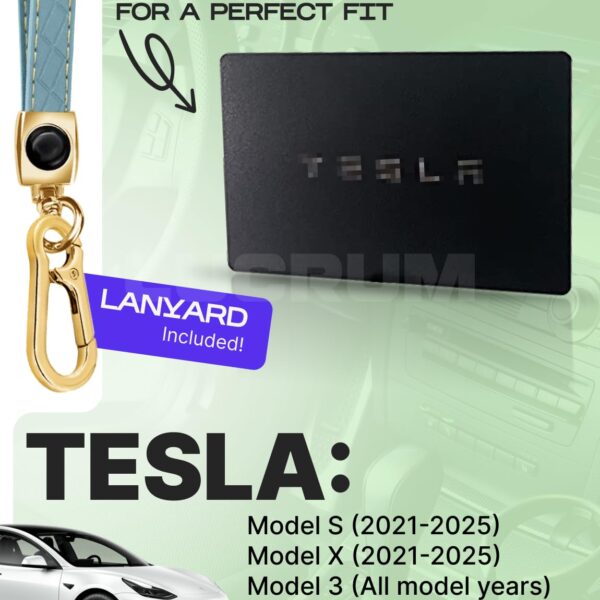 Lucrum Compatible with Tesla Card Key Holder & Leather Keychain – Blue & Golden Edges