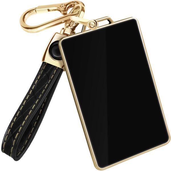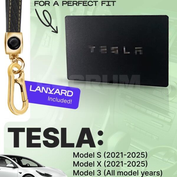 Lucrum Compatible with Tesla Card Key Holder & Leather Keychain – Black & Golden Edges