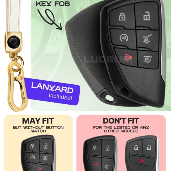 Lucrum Compatible with Chevy, GMC, and Buick Key Fob Cover & Leather Keychain – White & Golden Edges