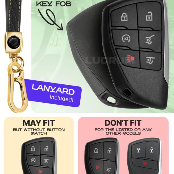 Lucrum Compatible with Chevy, GMC, and Buick Key Fob Cover & Leather Keychain – Black & Golden Edges