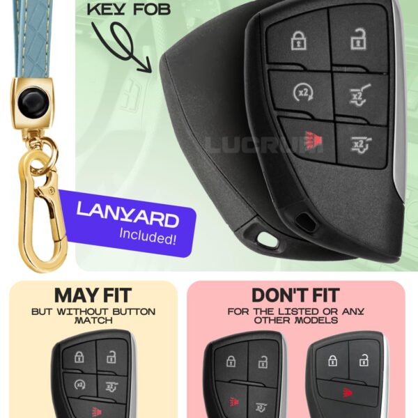 Lucrum Compatible with Chevy, GMC, and Buick Key Fob Cover & Leather Keychain – Blue & Golden Edges