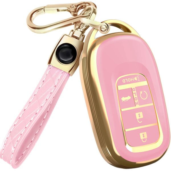 Lucrum Compatible with Honda Key Fob Cover & Leather Keychain – Pink & Golden Edges