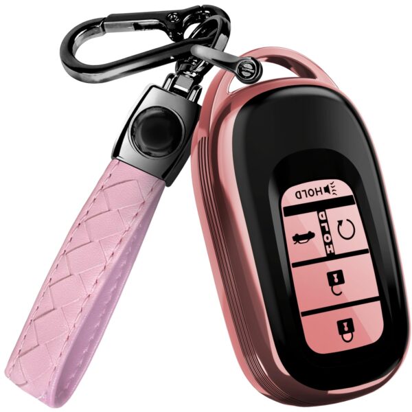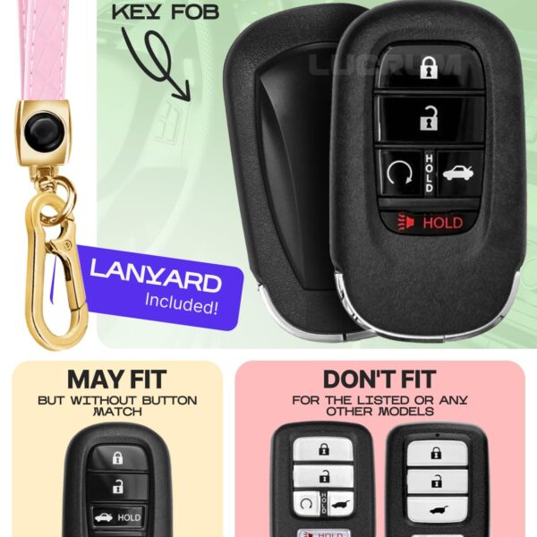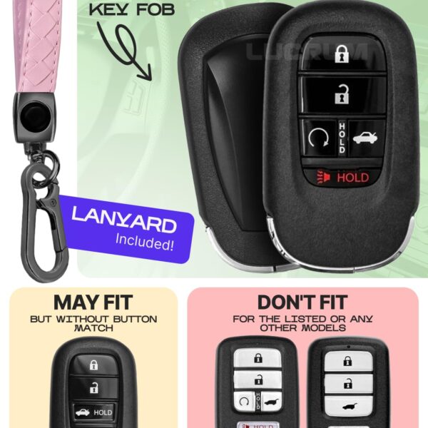 Lucrum Compatible with Honda Key Fob Cover & Leather Keychain – Pink & Black