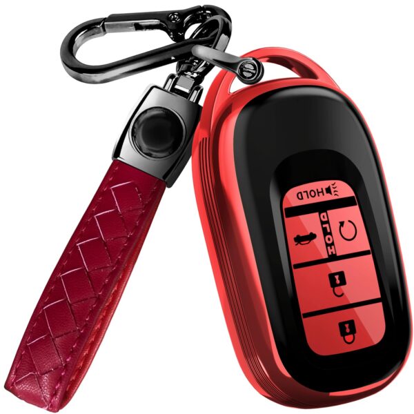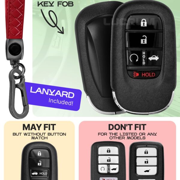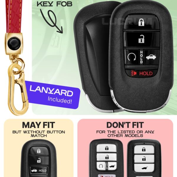 Lucrum Compatible with Honda Key Fob Cover & Leather Keychain – Red & Black