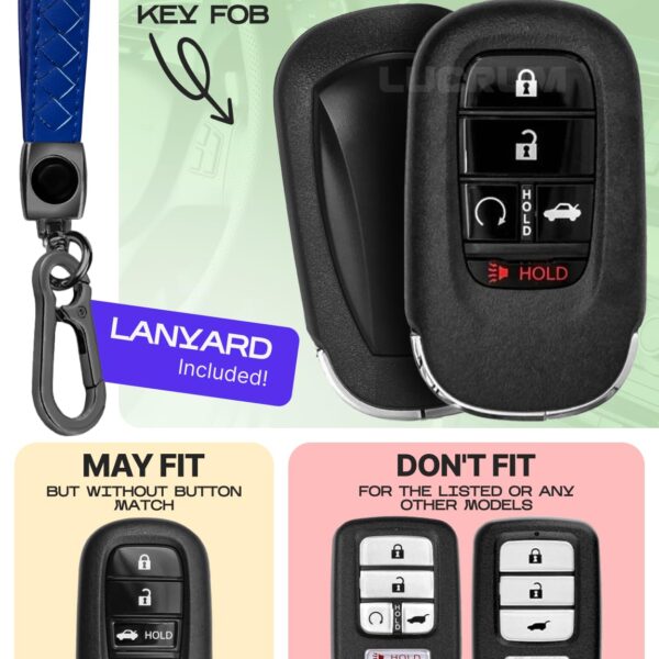 Lucrum Compatible with Honda Key Fob Cover & Leather Keychain – Blue & Black