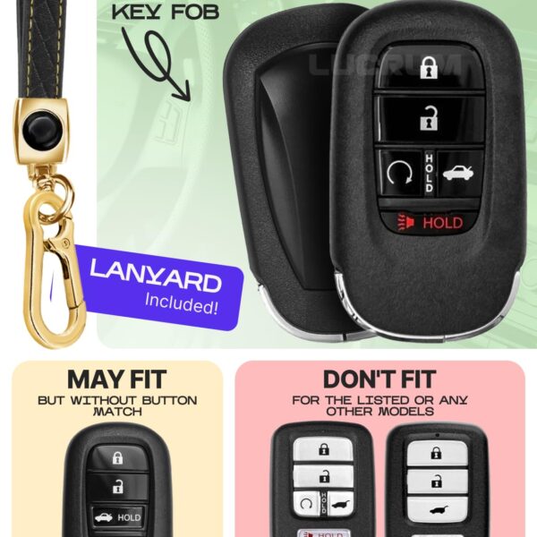 Lucrum Compatible with Honda Key Fob Cover & Leather Keychain – Black & Golden Edges