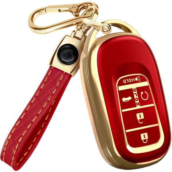 Lucrum Compatible with Honda Key Fob Cover & Leather Keychain – Red & Golden Edges