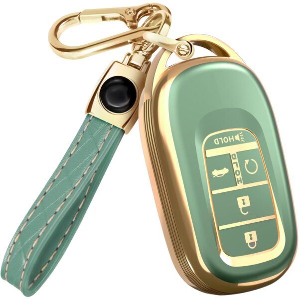 Lucrum Compatible with Honda Key Fob Cover & Leather Keychain – Green & Golden Edges