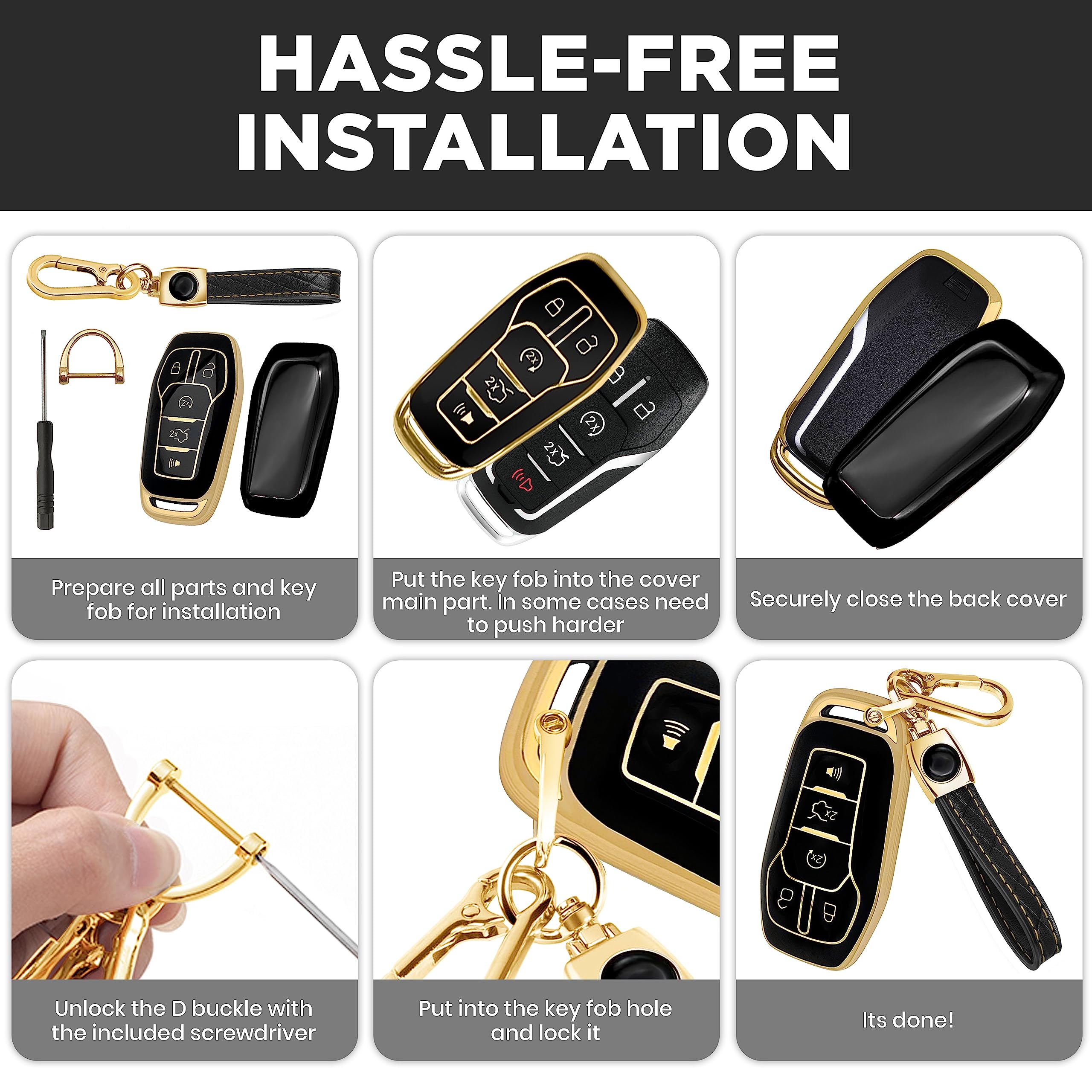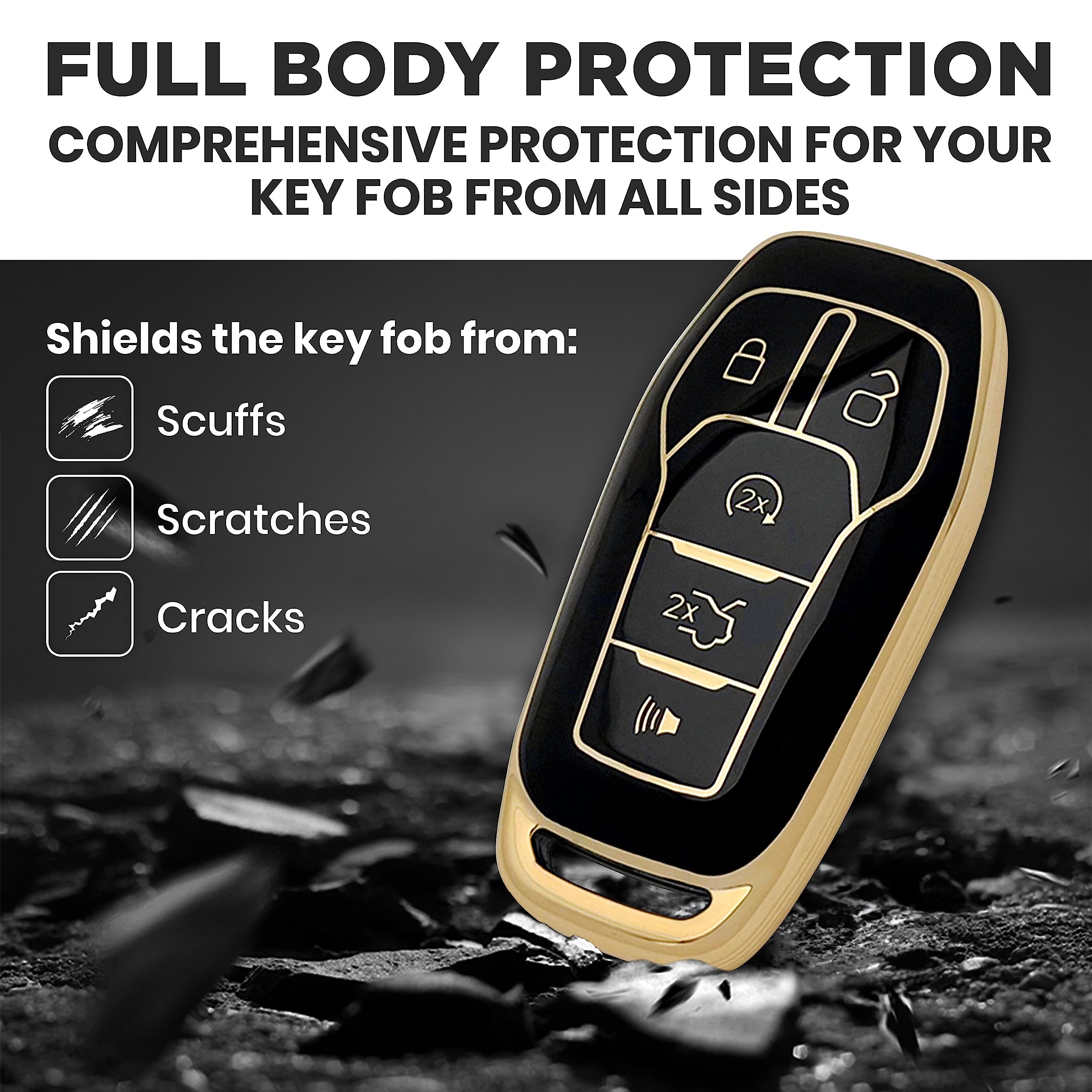 With its combination of style, button protection, all-around coverage, and the detachable keychain with a carabiner, the TPU key fob cover for the Ford offers a practical and fashionable solution to keep your key fob safe and secure