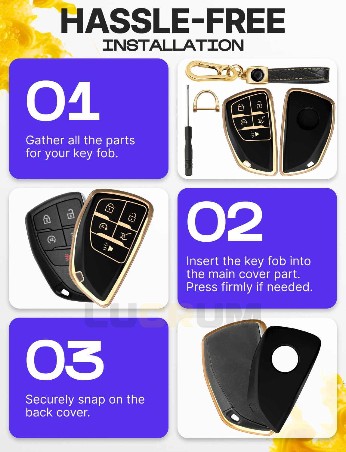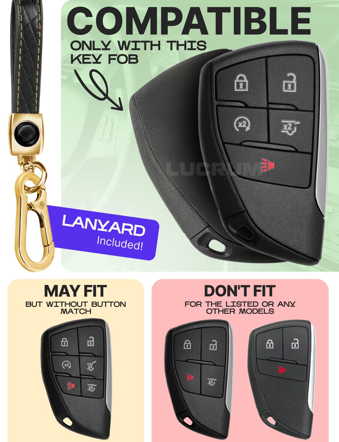 Tired of your plain key fob — or worried about damaging it?Lucrum’s premium TPU key fob cover is the perfect blend of style and protection. Whether you’re looking to upgrade the look of your fob or shield it from everyday wear, this cover is made to impress.Choose from a range of elegant colors and finishes to match your personality, your car, or your mood — because even the smallest accessories deserve a personal touch.Functional by DesignCarefully molded button slots protect against accidental presses while still offering smooth, responsive control. The cover wraps your fob in durable TPU, guarding it from scratches, scuffs, and drops—without compromising functionality.Smart Details That MatterA detachable leather keychain and metal carabiner add convenience and carry options, whether clipped to your bag or belt loop. A mini screwdriver is included for quick and easy keychain installation.Designed for a Perfect MatchCompatible with Chevy, GMC, Buick, and Hummer models listed below:Suburban – 2021, 2022, 2023, 2024, 2025
