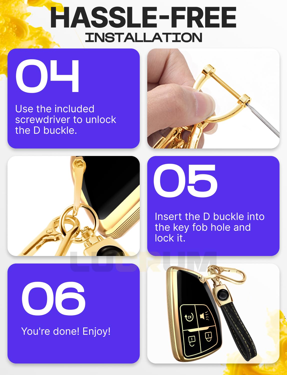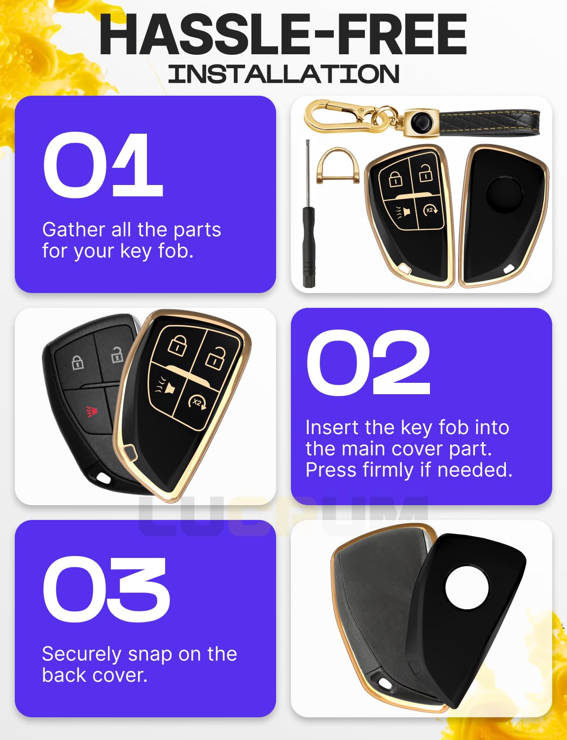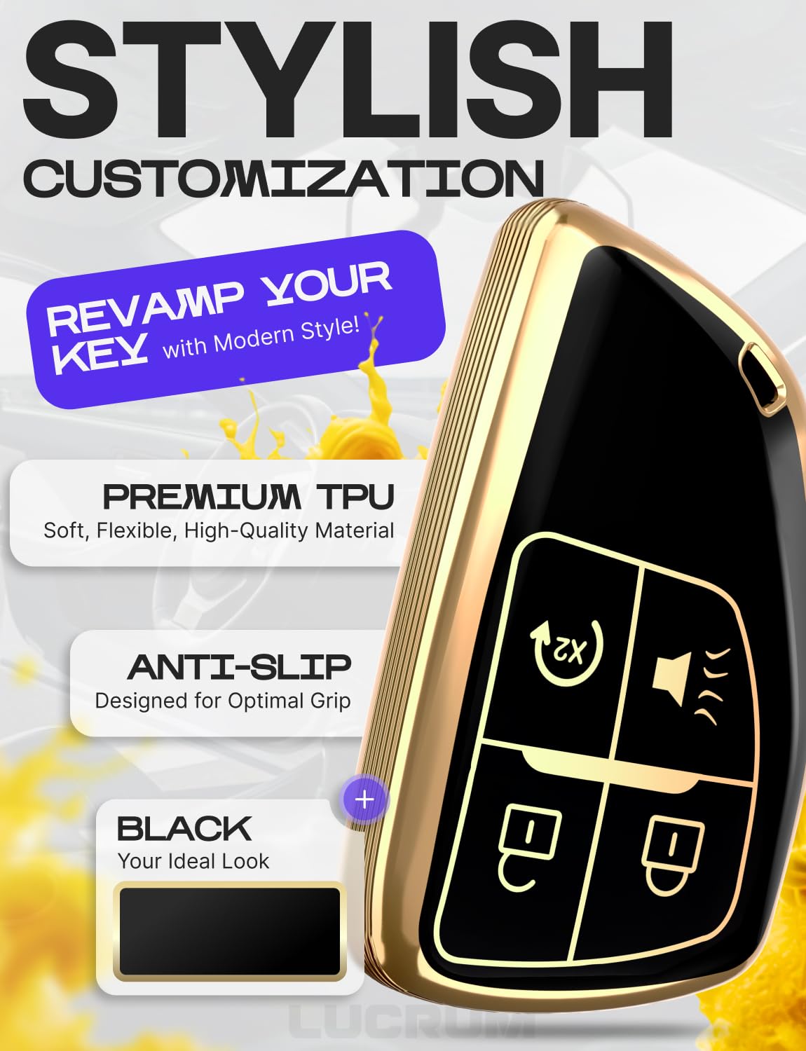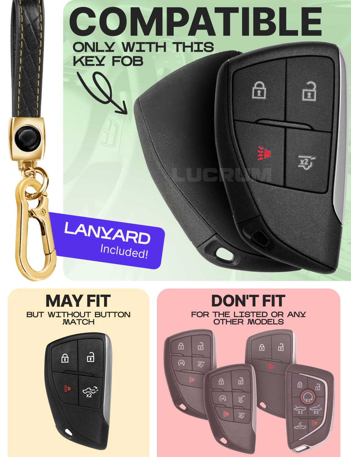 Tired of your plain key fob — or worried about damaging it?Lucrum’s premium TPU key fob cover is the perfect blend of style and protection. Whether you’re looking to upgrade the look of your fob or shield it from everyday wear, this cover is made to impress.Choose from a range of elegant colors and finishes to match your personality, your car, or your mood — because even the smallest accessories deserve a personal touch.Functional by DesignCarefully molded button slots protect against accidental presses while still offering smooth, responsive control. The cover wraps your fob in durable TPU, guarding it from scratches, scuffs, and drops—without compromising functionality.Smart Details That MatterA detachable leather keychain and metal carabiner add convenience and carry options, whether clipped to your bag or belt loop. A mini screwdriver is included for quick and easy keychain installation.Designed for a Perfect MatchCompatible with Chevy, GMC, Buick, and Hummer models listed below:Suburban – 2021, 2022, 2023, 2024, 2025