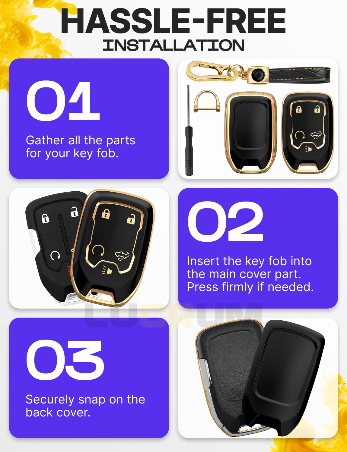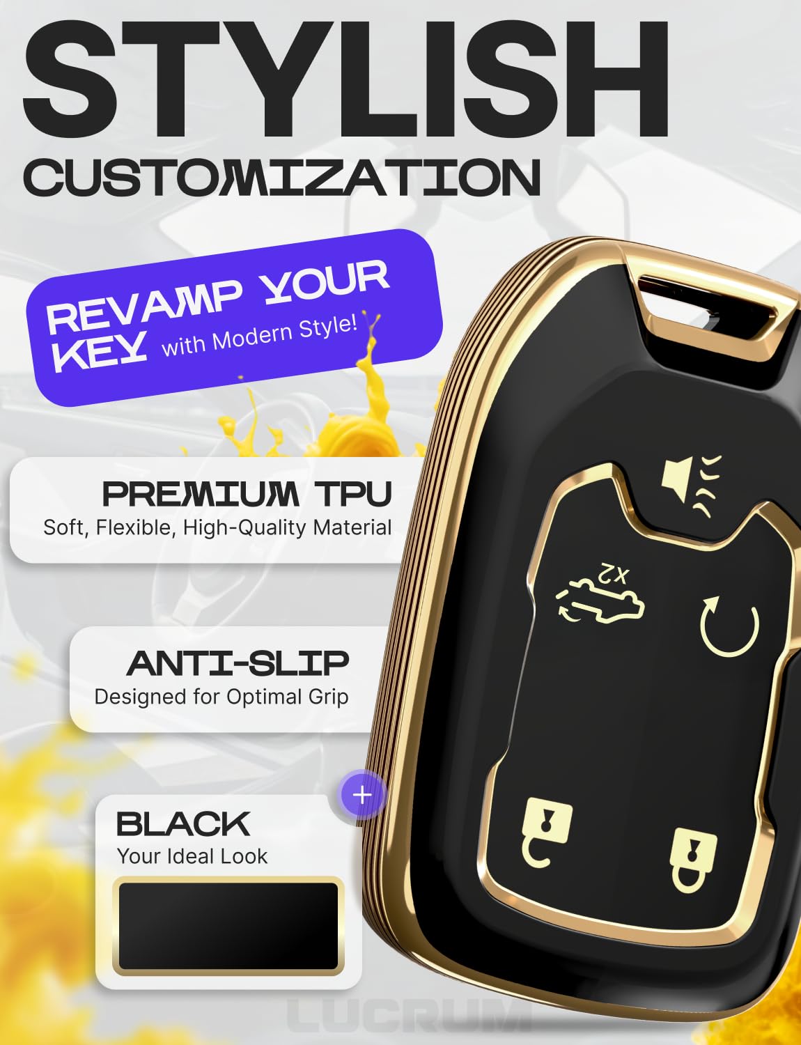 Tired of your plain key fob — or worried about damaging it?Lucrum’s premium TPU key fob cover is the perfect blend of style and protection. Whether you’re looking to upgrade the look of your fob or shield it from everyday wear, this cover is made to impress.Choose from a range of elegant colors and finishes to match your personality, your car, or your mood — because even the smallest accessories deserve a personal touch.Functional by DesignCarefully molded button slots protect against accidental presses while still offering smooth, responsive control. The cover wraps your fob in durable TPU, guarding it from scratches, scuffs, and drops—without compromising functionality.Smart Details That MatterA detachable leather keychain and metal carabiner add convenience and carry options, whether clipped to your bag or belt loop. A mini screwdriver is included for quick and easy keychain installation.Designed for a Perfect MatchCompatible with Chevy and GMC models listed below:for Silverado – 2015, 2016, 2017, 2018, 2019, 2020for Suburban – 2015, 2016, 2017, 2018, 2019, 2020for Acadia – 2014, 2015, 2016, 2017, 2018, 2019, 2020, 2021, 2022, 2023, 2024for Sierra – 2015, 2016, 2017, 2018, 2019, 2020, 2021, 2022, 2023