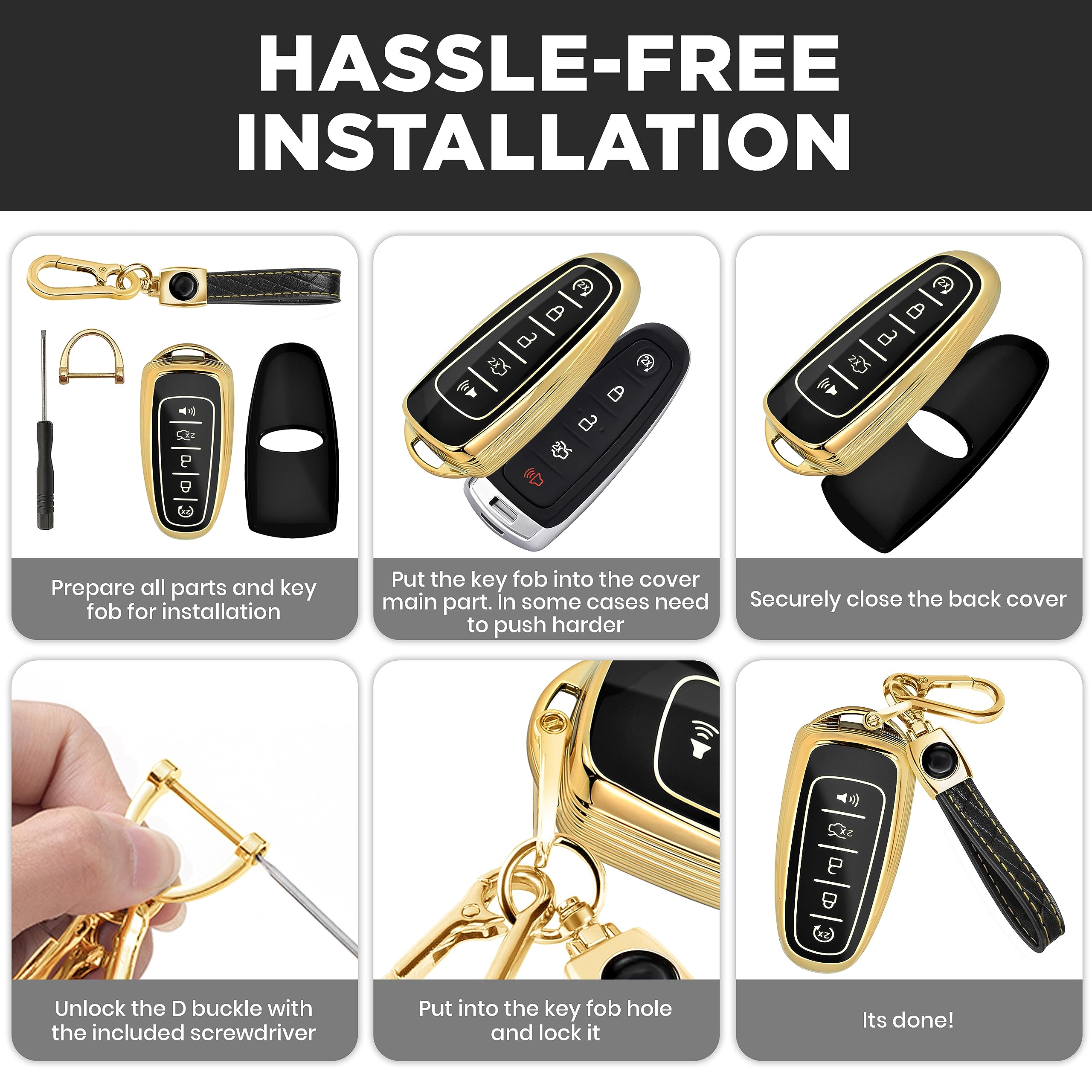 Tired of your plain key fob — or worried about damaging it?Lucrum’s premium TPU key fob cover is the perfect blend of style and protection. Whether you’re looking to upgrade the look of your fob or shield it from everyday wear, this cover is made to impress.Choose from a range of elegant colors and finishes to match your personality, your car, or your mood — because even the smallest accessories deserve a personal touch.Functional by DesignCarefully molded button slots protect against accidental presses while still offering smooth, responsive control. The cover wraps your fob in durable TPU, guarding it from scratches, scuffs, and drops—without compromising functionality.Smart Details That MatterA detachable leather keychain and metal carabiner add convenience and carry options, whether clipped to your bag or belt loop. A mini screwdriver is included for quick and easy keychain installation.Designed for a Perfect MatchCompatible with Ford and Lincoln models listed below:for Edge – 2011, 2012, 2013, 2014, 2015