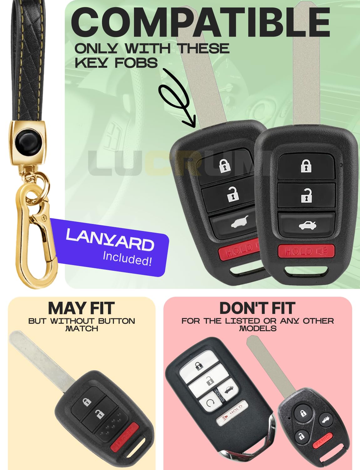 Lucrum Compatible with Honda Key Fob Cover & Leather Keychain