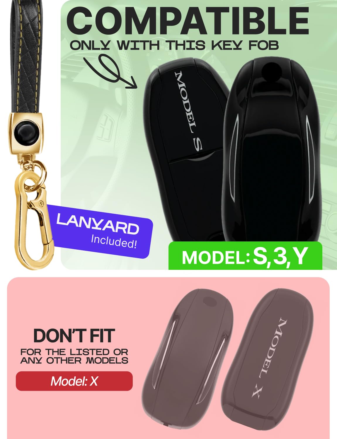 Lucrum Compatible with Tesla Model 3 S Y Key Fob Cover & Leather Keychain
