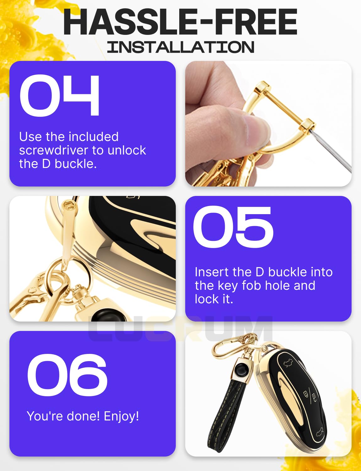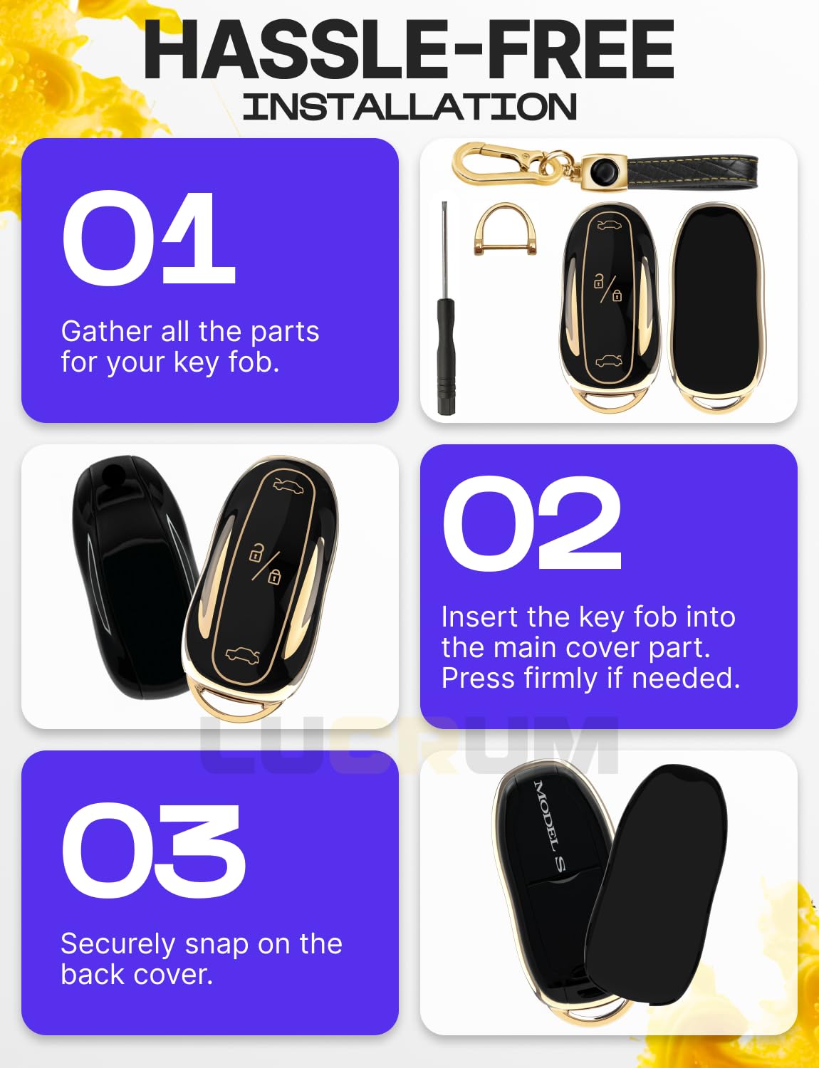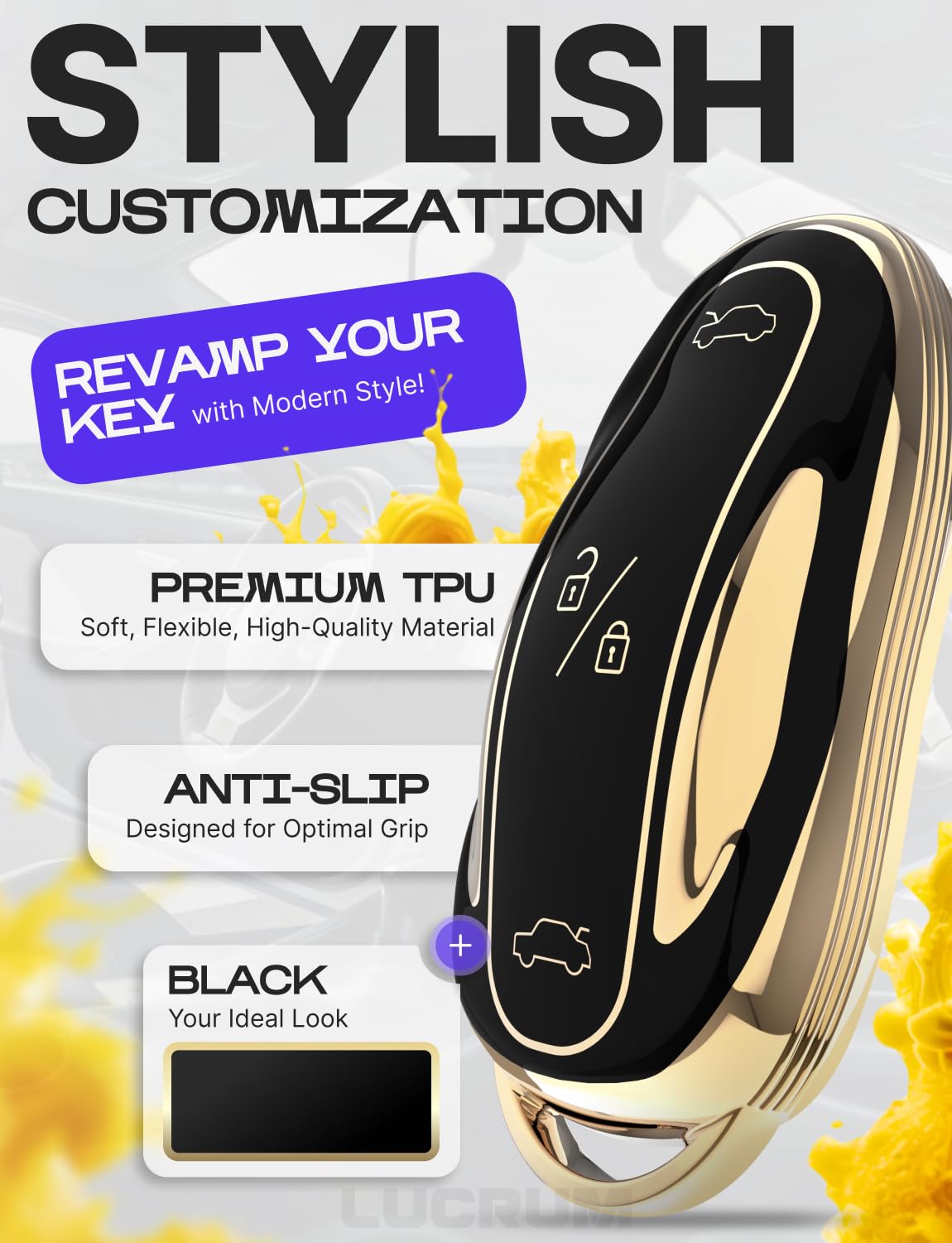 Tired of your plain key fob — or worried about damaging it?Lucrum’s premium TPU key fob cover is the perfect blend of style and protection. Whether you’re looking to upgrade the look of your fob or shield it from everyday wear, this cover is made to impress.Choose from a range of elegant colors and finishes to match your personality, your car, or your mood — because even the smallest accessories deserve a personal touch.Functional by DesignCarefully molded button slots protect against accidental presses while still offering smooth, responsive control. The cover wraps your fob in durable TPU, guarding it from scratches, scuffs, and drops—without compromising functionality.Smart Details That MatterA detachable leather keychain and metal carabiner add convenience and carry options, whether clipped to your bag or belt loop. A mini screwdriver is included for quick and easy keychain installation.Designed for a Perfect MatchCompatible with Tesla models listed below:for Model 3for Model Sfor Model Y